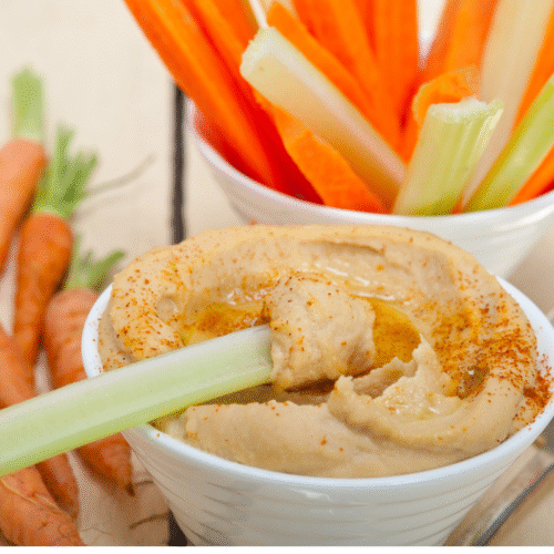 Složení: řapíkatý celer, mrkev, cizrna, tahini, olivový olej, česnek, sůl