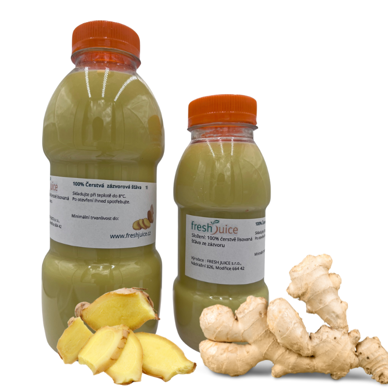 100% přírodní čerstvá zázvorová šťáva za studena lisovaná - Zdravý pomocník do čaje při nemoci i do limonády na osvěžení!